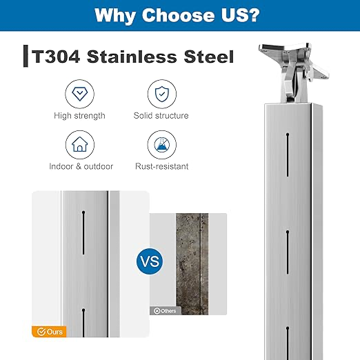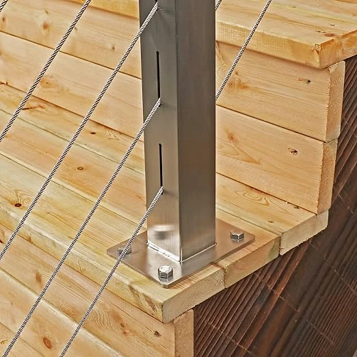 Our stainless steel cable railing posts are suitable for both indoor and outdoor protection applications, such as corners, stairs, porches, fences, patios, balconies, gardens, residential buildings, commercial offices, hotels, garages, and more.