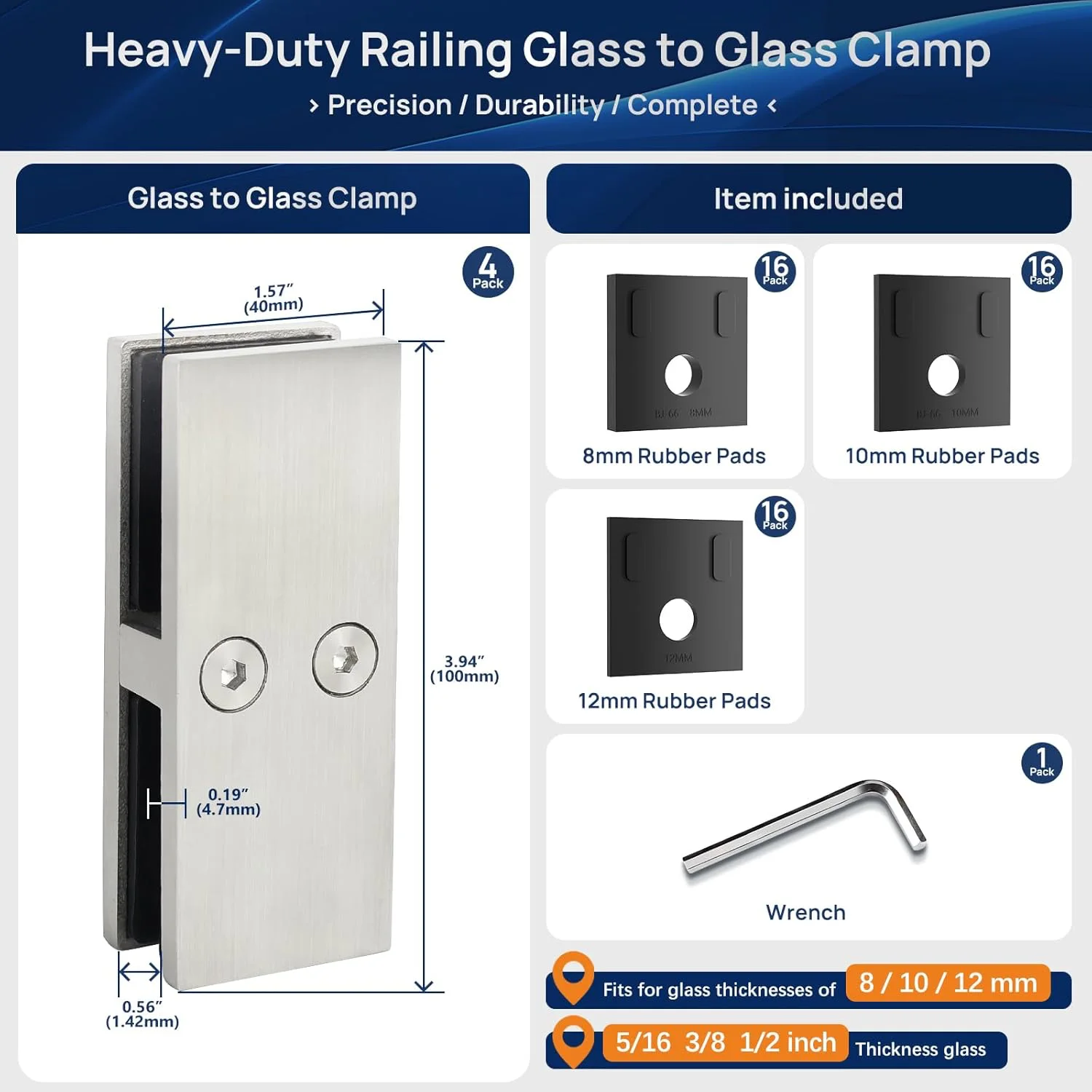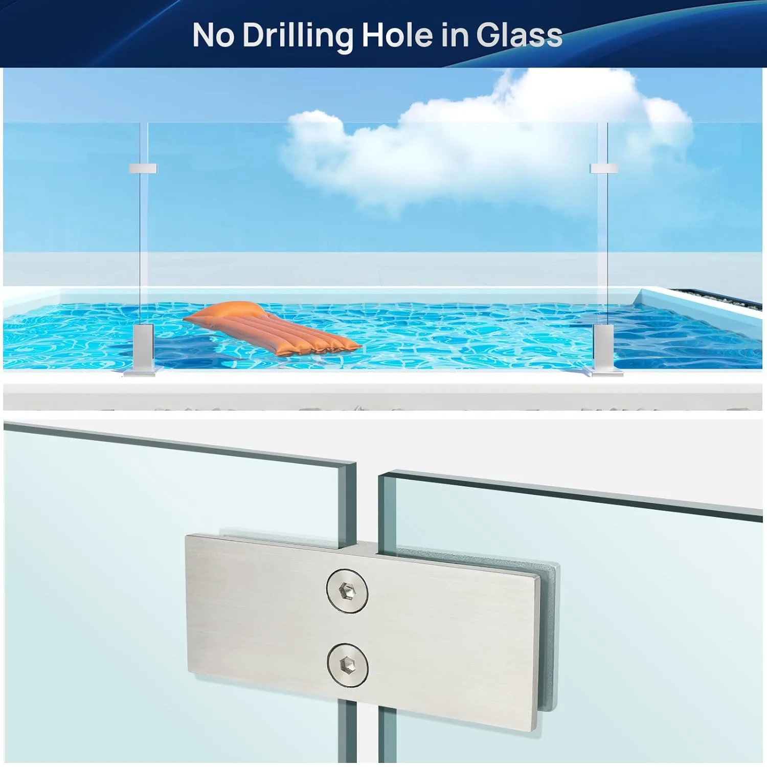 LukLoy Railing Glass to Glass Clamp, Stainless Steel 304 Bracket for Glass Balustrade Railing Pool Fence (4 Pieces 180°)